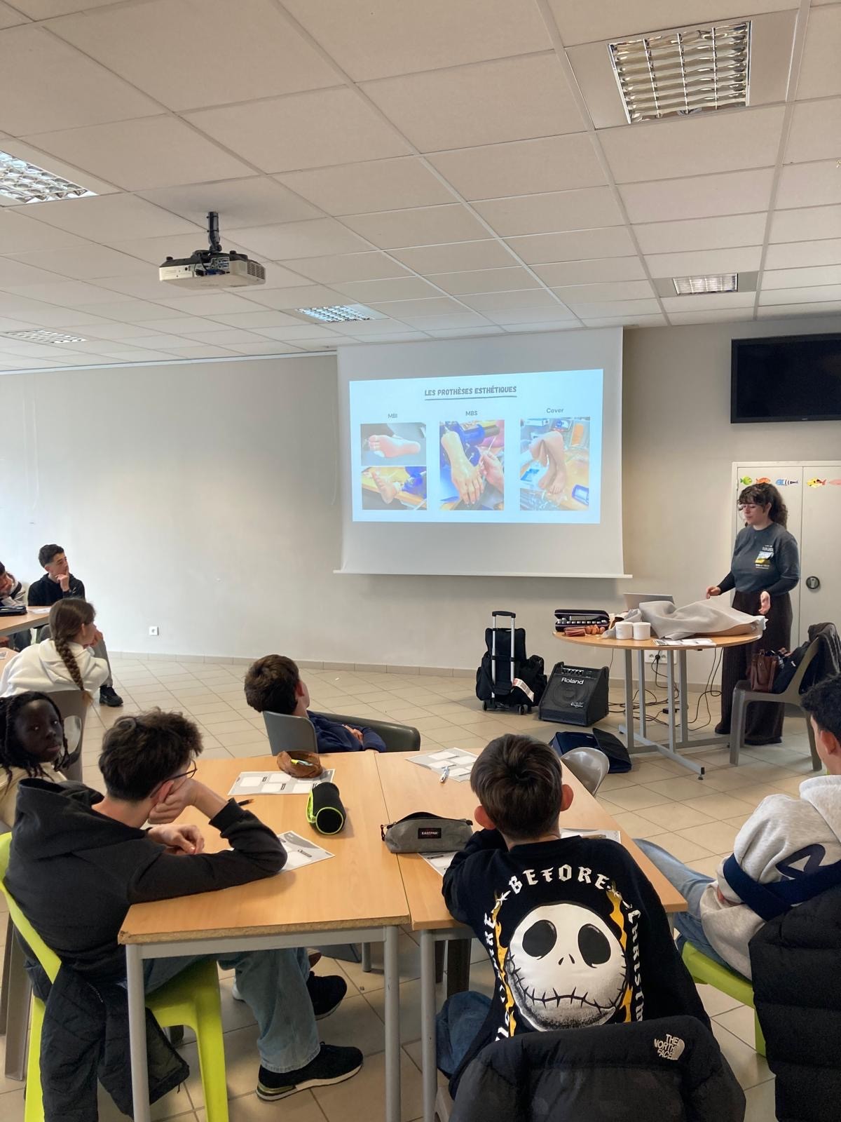 Dans le cadre du cours d’arts plastiques et d’un projet pluridisciplinaire, les élèves de 3èmes ont eu la chance d’assister à une intervention pas comme les autres : celle de Mme GASNIER, orthoprothésiste.