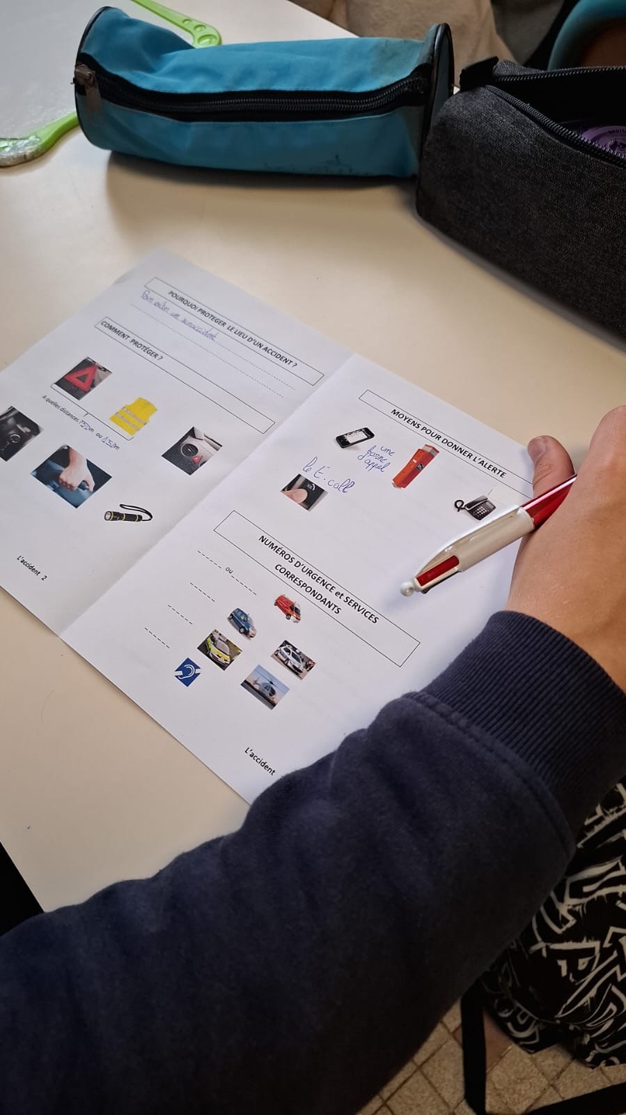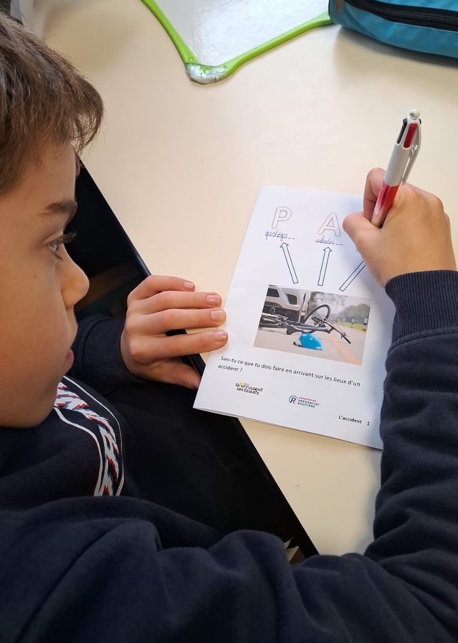 Après une première sensibilisation auprès des jeunes cyclistes, les 6ᵉ ont participé à un atelier sur les causes et conséquences des accidents, ainsi que sur les bons réflexes à adopter en cas d’urgence.