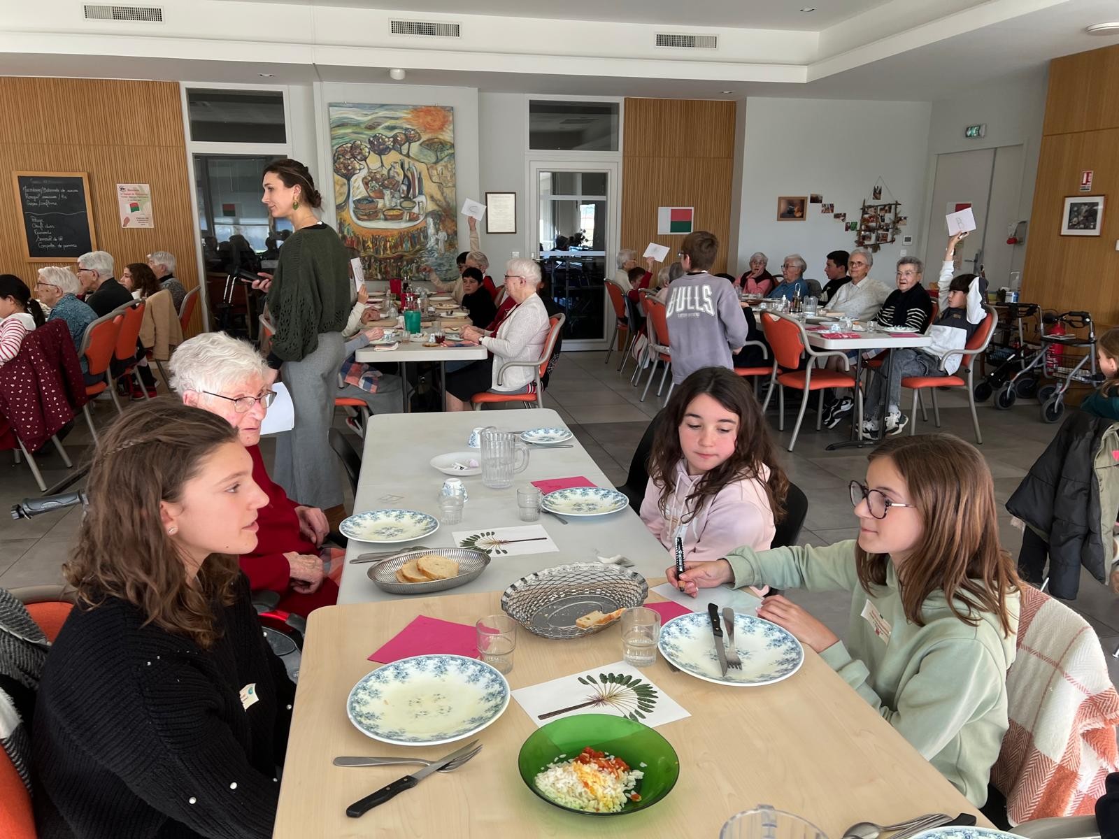 Plusieurs repas partagés sur le temps du midi ont permis aux élèves et aux sœurs d’échanger, de découvrir leurs histoires et de créer un lien simple et chaleureux.