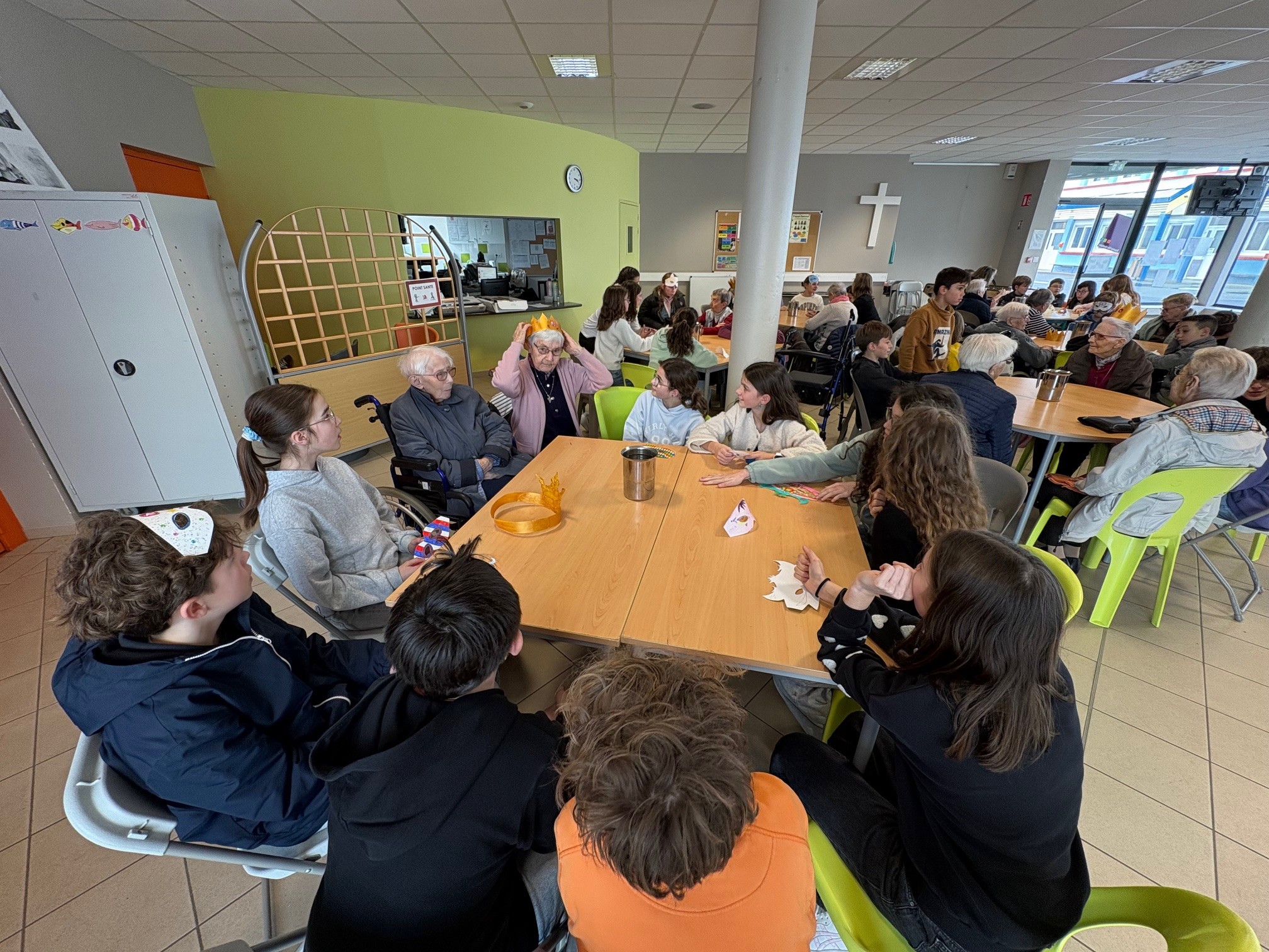 Ce moment de partage s’est déroulé autour d’un temps convivial pour fêter la Chandeleur, avec la dégustation de crêpes maison. Les élèves ont également présenté les masques de carnaval qu’ils avaient réalisés, apportant couleurs et bonne humeur à cette rencontre.