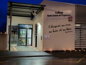Dès leur arrivée, les élèves ont découvert les façades du collège scintillant de luminions, symboles de lumière, d’espérance et de joie.
