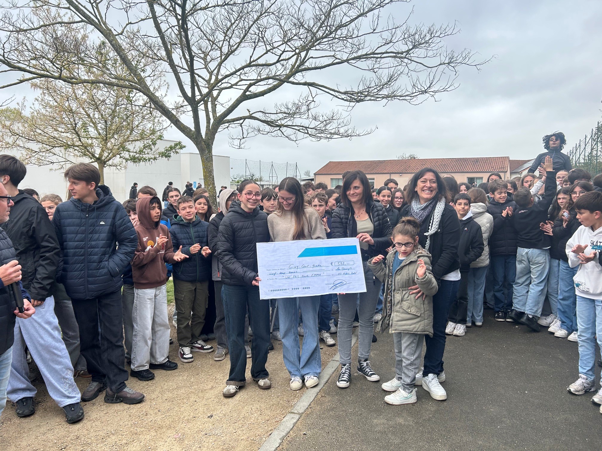 Vendredi 3 avril, les élèves du Collège Notre-Dame de l’Espérance ont remis un don solidaire à l’association « Un pas pour Emma », en présence d’Emma et de sa maman.