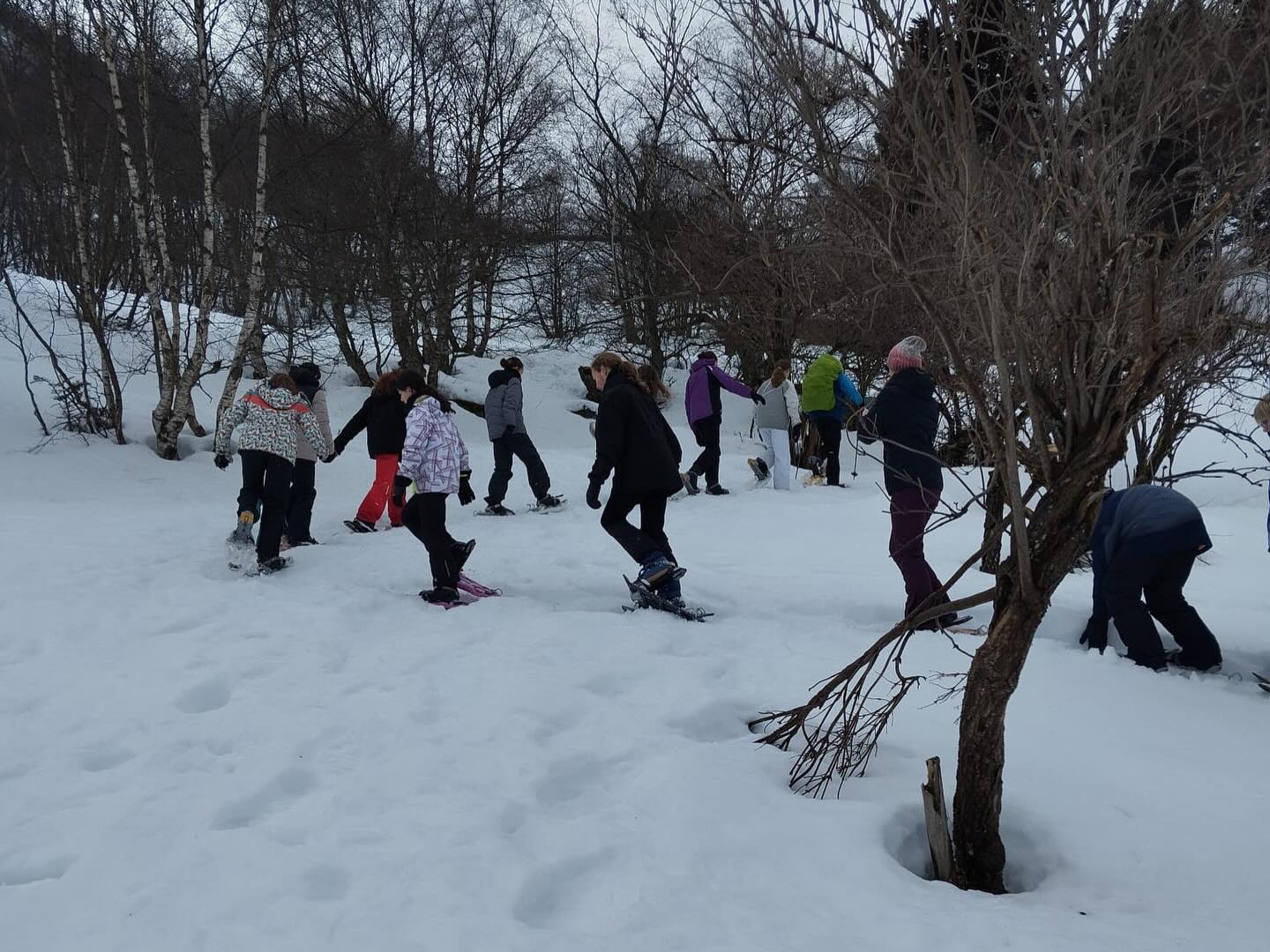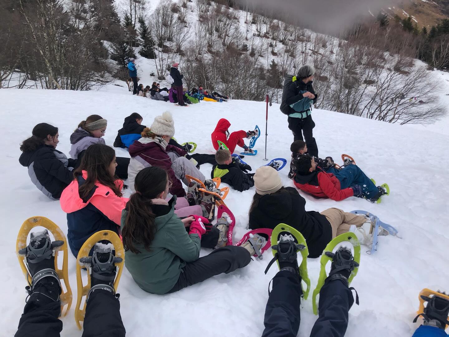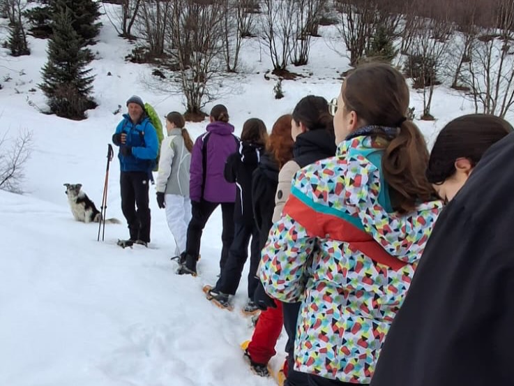 Cet après-midi, le temps était légèrement mieux pour notre randonnée raquettes dans la montagne.