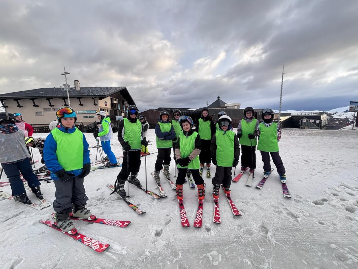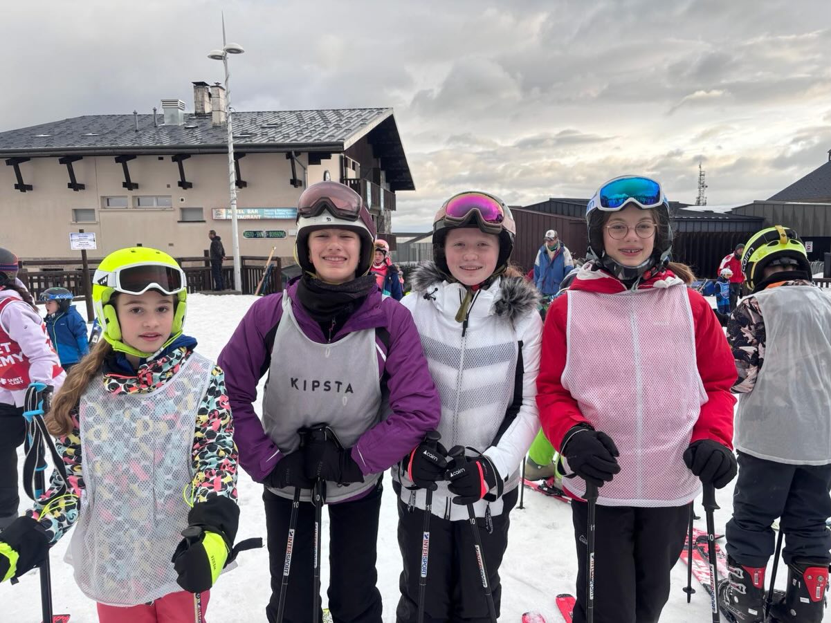 Pour cette première journée, les élèves ont skié avec les moniteurs ce matin sous un temps gris avec quelques averses.